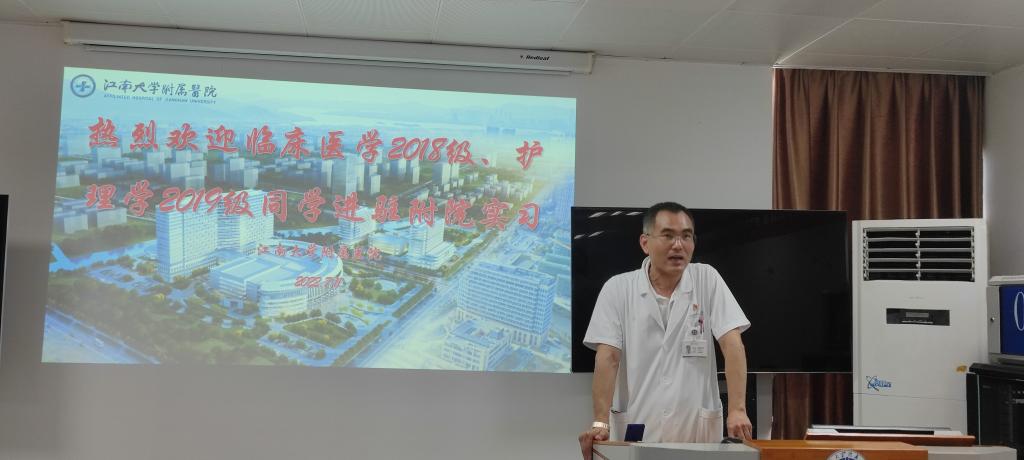 附属医院进点实习培训会在附院北院区举行,附院教育处处长徐德武主持会议。会议伊始,北院区负责人祝黎洁致欢迎辞,欢迎2018级临床医学专业和2019级护理学专业同学来院实习,详细介绍了无锡古吴国的历史底蕴,以及2012年以来附院在成人社区