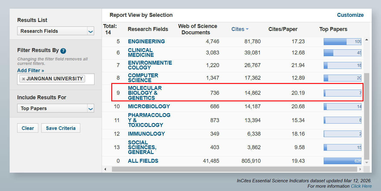 ESI(Essential Science Indicator)2026年3月12日最新数据显示,成人社区