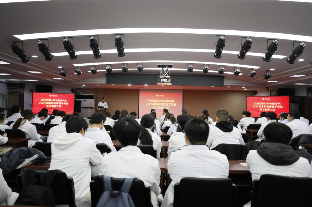 临床医学专业后2.5年的新一批学生。医院举办了一场简朴而隆重的欢迎仪式暨入院教育活动,向同学们讲授了“开学第一课”。成人社区