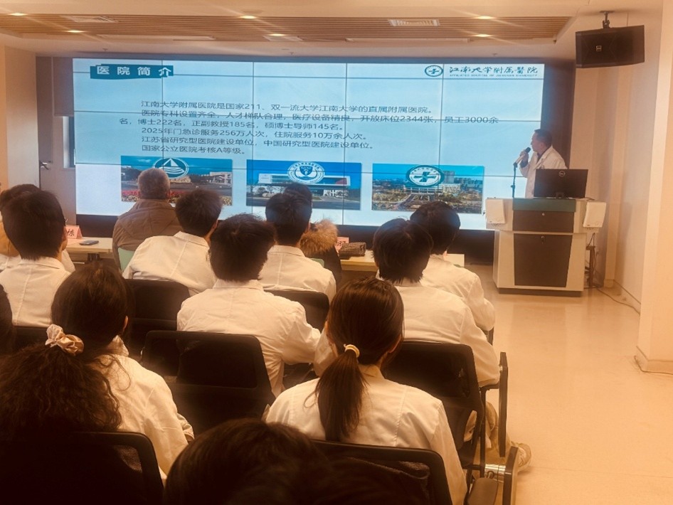 医院教育处对此次仪式给予了高度重视,精心部署。峁勇对同学们的到来表示热烈欢迎,附属医院是同学们将理论知识与临床实践深度融合的“练兵场”,是感悟医者仁心、锤炼临床思维的“大熔炉”,更是从医学生向准医生角色转变的关键起点;希望同学们能尽快融入成人社区